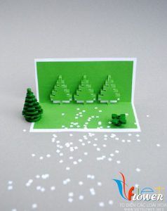 Dùng dao trổ khéo léo dọc theo các đường kẻ sẵn theo mẫu đã download, sau đó nhấc nhẹ nhàng từng nấc lên là sẽ thấy cây thông Noel nổi lên phía trên. Đừng quên ghi lên tấm thiệp một lời nhắn hoặc câu chúc nào đó cho người nhận nhé!